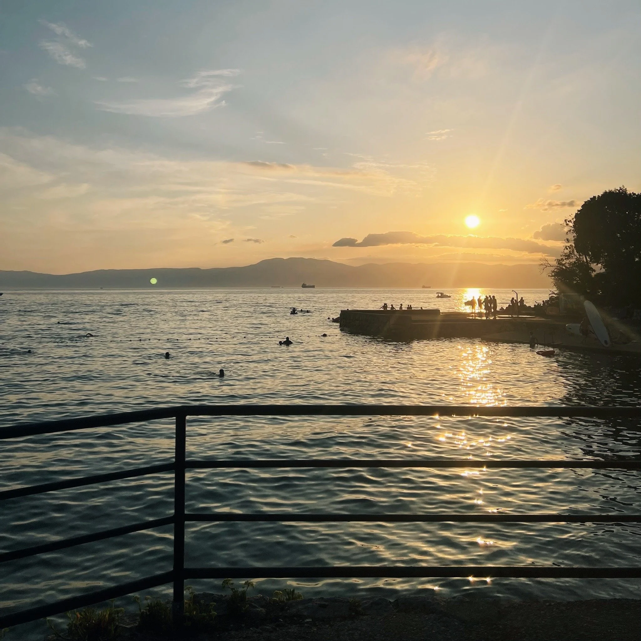 Mit dr Überquerig vor Kroatische Grenze hei mir gwüsst, es isch nüm wit. Nach jedere Kurve hei mir dr erst Blick uf z'Meer gspannt erwartet. Und plötzlich hei mir uf di dunkublaui Farb vor Adria und die kargi Küste vo Kroatie abegluegt. Da hei mir nume no eis wöue: No More (ab an's Meer).