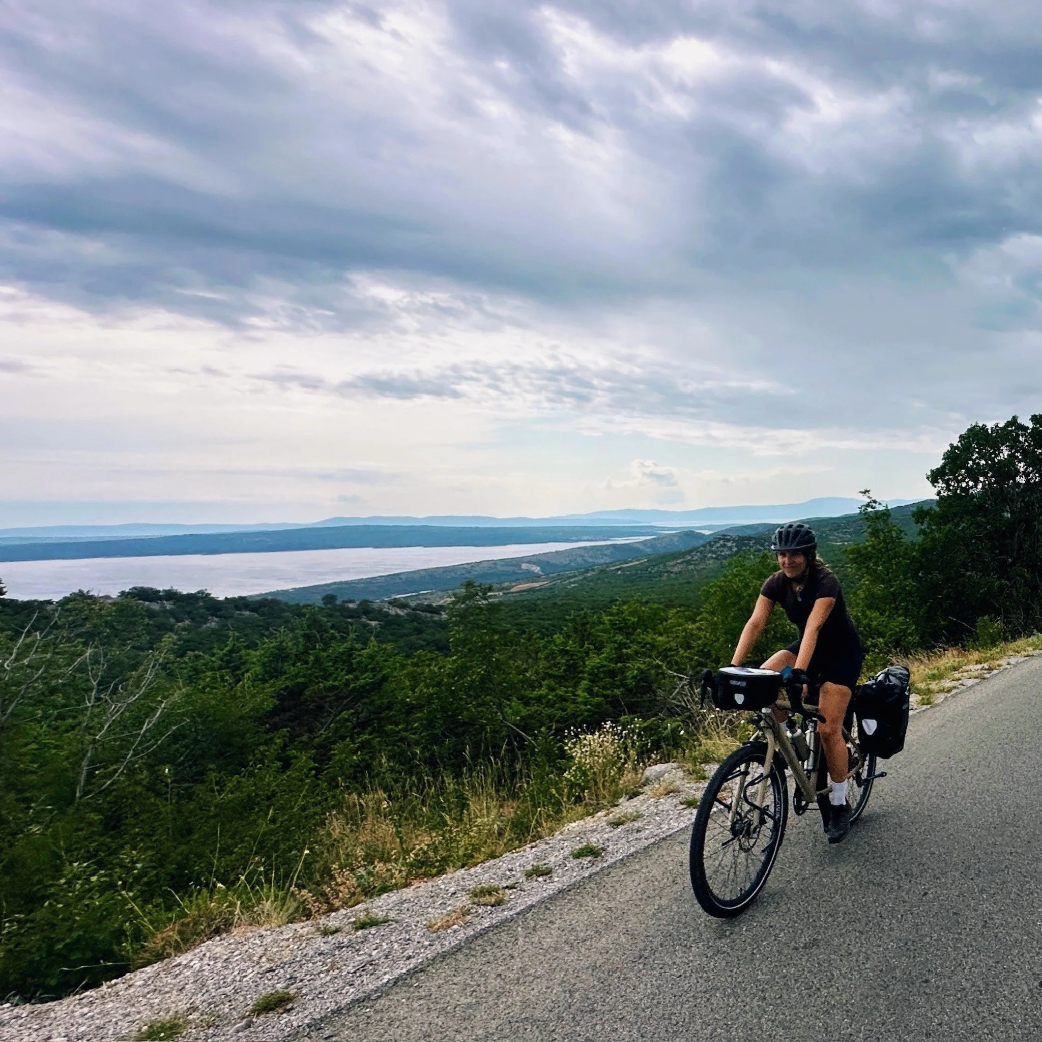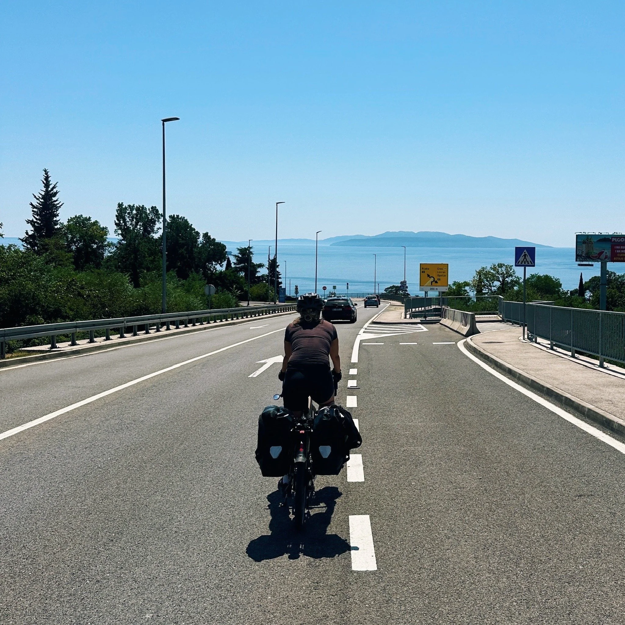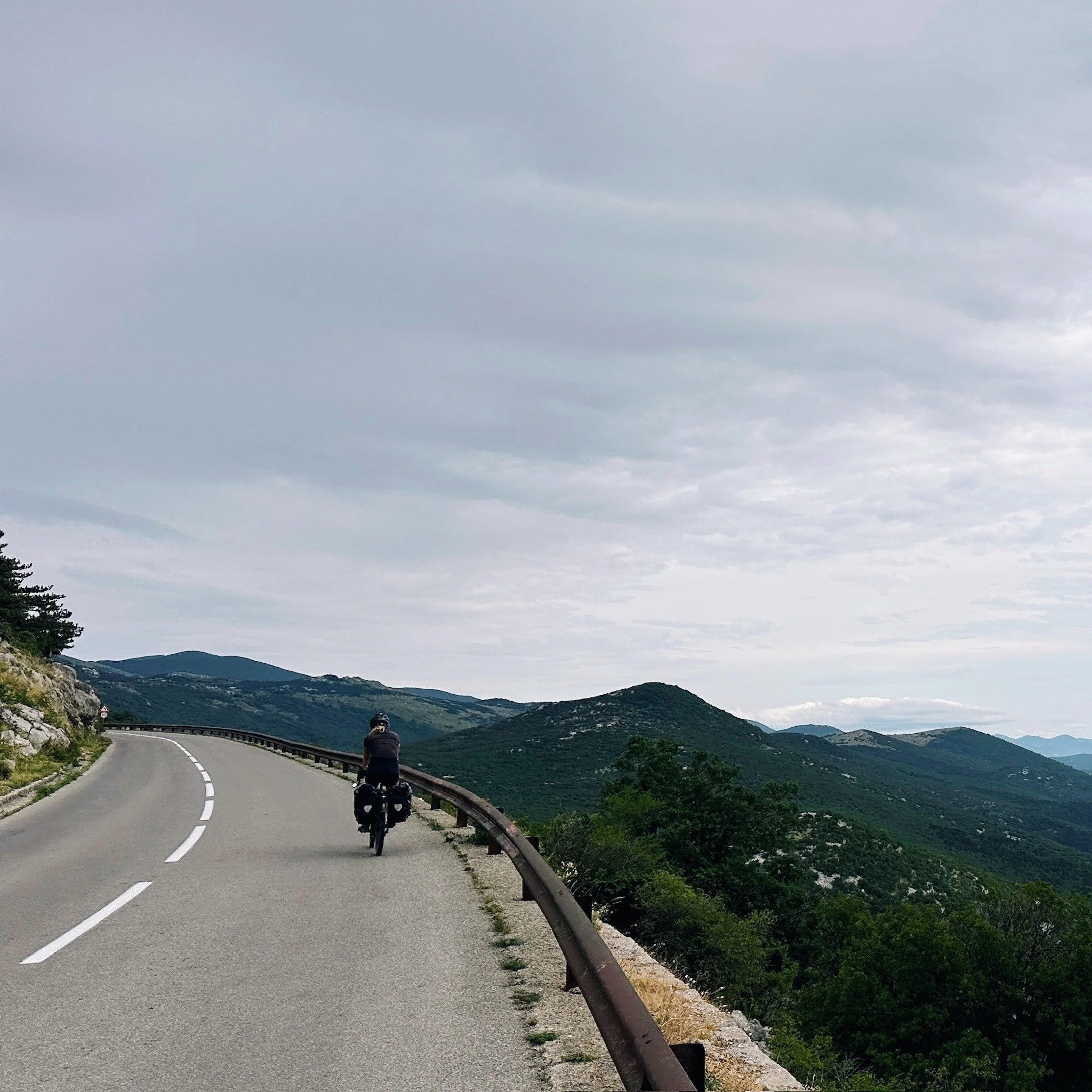 Z Meer hei mir nid sofort hinger üs gla, über zwöi Täg hei mir vo 700 Meter Höchi dr wunderschön Usblick über Küste gnosse, während mir langsam i abglägneri, unbelasseni Regione gfahre si. Wildi Ross, e mönscheleere Wäg düre Pliviticer Nationalpark und e Schlafplatz mit Blick uf z Meer hei dr Ufenthalt in Kroatie einzigartig gmacht.