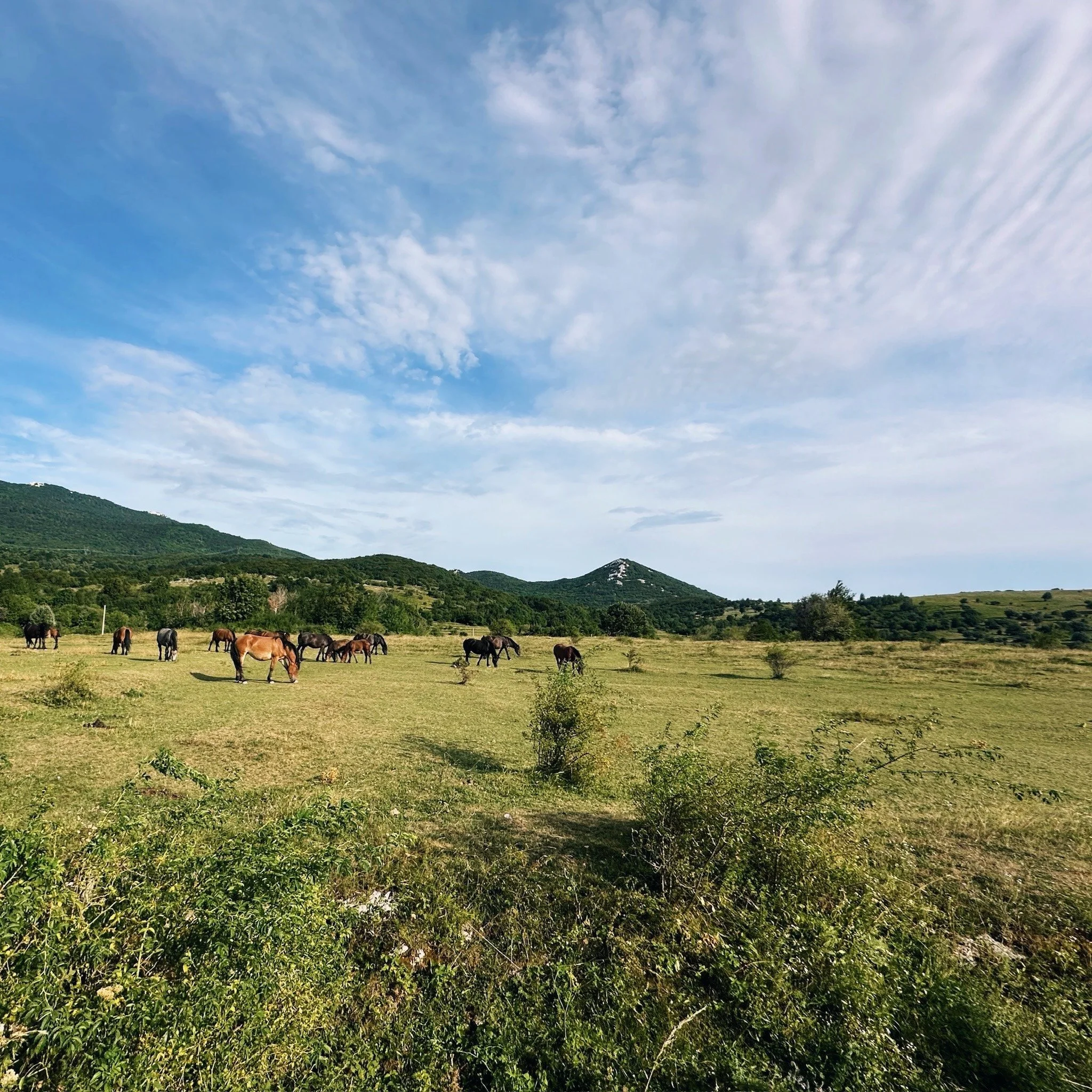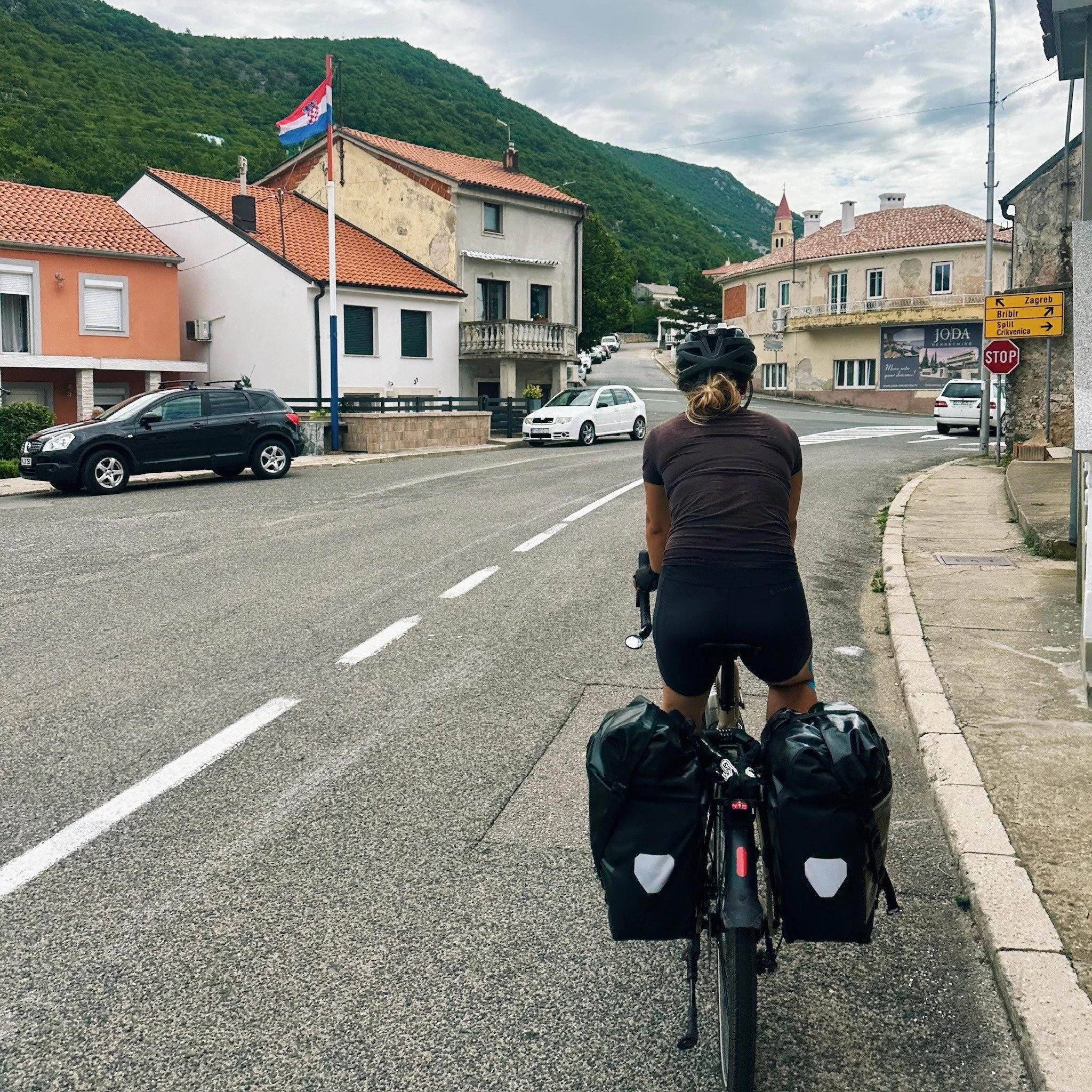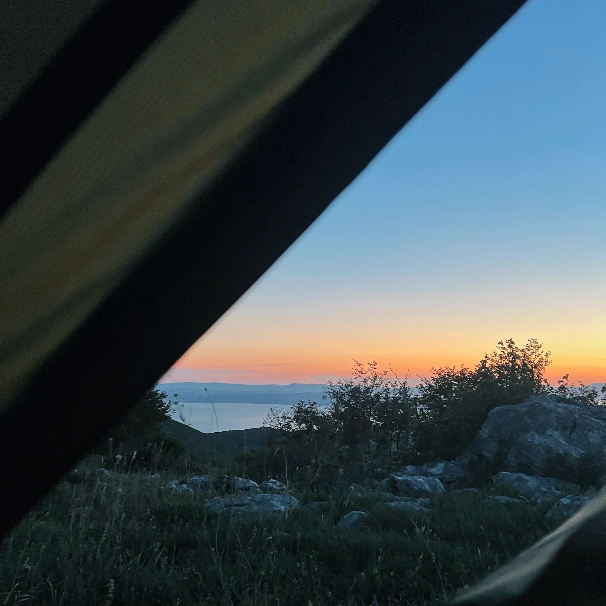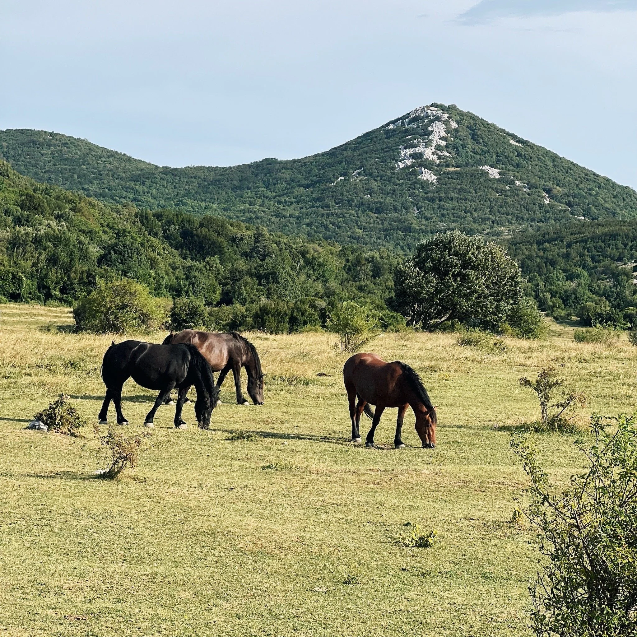 Z Meer hei mir nid sofort hinger üs gla, über zwöi Täg hei mir vo 700 Meter Höchi dr wunderschön Usblick über Küste gnosse, während mir langsam i abglägneri, unbelasseni Regione gfahre si. Wildi Ross, e mönscheleere Wäg düre Pliviticer Nationalpark und e Schlafplatz mit Blick uf z Meer hei dr Ufenthalt in Kroatie einzigartig gmacht.